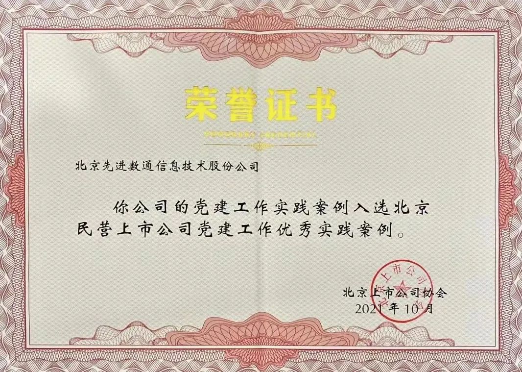 近期,北京上市公司协会授予北京K8凯发(中国)信息技术股份公司荣誉证书,K8凯发(中国)党建工作实践入选北京民营上市公司党建工作优秀实践案例,相关党建活动已收录在《北京民营上市公司党建工作优秀实践案例汇编》。