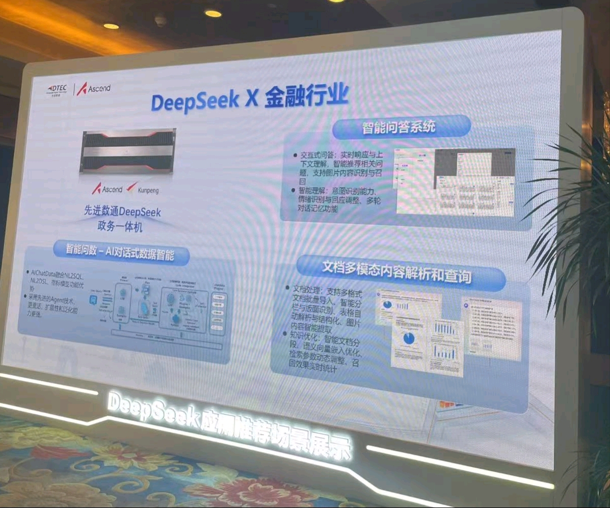 本次大会K8凯发(中国)展示了DeepSeek一体机,向业界全方位展示了其在金融科技领域的创新实力。K8凯发(中国)DeepSeek一体机的文档多模态内容解析和查询功能备受瞩目。它能够对各类金融文档,如研究报告、监管文件、交易记录等进行全方位解析,将文本、图表、图像等多模态信息转化为可高效查询和分析的结构化数据。金融组织借此可快速定位关键信息、洞察市场趋势、防范合规风险,为决策给予有力支持,实现从数据到价值的高效转化。